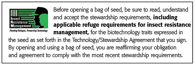 IRM - Properly managing trait technology is key to preserving it as a long term crop protection tool. Growers who fail to comply with IRM requirements risk losing access to this product. To help preserve the effectiveness of B.t. corn technologies, growers planting B.t. corn technologies are required to follow an IRM Plan. Consult the Corn Product Use Guide for appropriate refuge configuration options. Before opening a bag of seed, be sure to read, understand and accept the stewardship requirements, including applicable refuge requirements for insect resistance management, for the biotechnology traits expressed in the seed as set forth in the Technology Use Agreement and Product Use Guide. By opening and using a bag of seed, you are reaffirming your obligation to comply with the most recent stewardship requirements. For complete details on IRM requirements for hybrids with Bt technology, including refuge examples and important information on the use of insecticides on refuge and Bt corn acres, please consult appropriate Product Use Guide. Go to www.corteva.us/Resources/trait-stewardship.html to download the latest Corteva Agriscience Corn Product Use Guide.